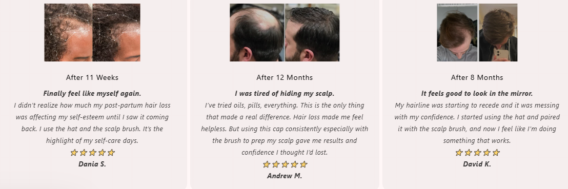 I’ve tried minoxidil, biotin, all of that. Nothing worked long-term. This cap is different. Easy to wear while I game or work from home. Hair is growing in thicker, and my confidence is up. It’s discreet and powerful.